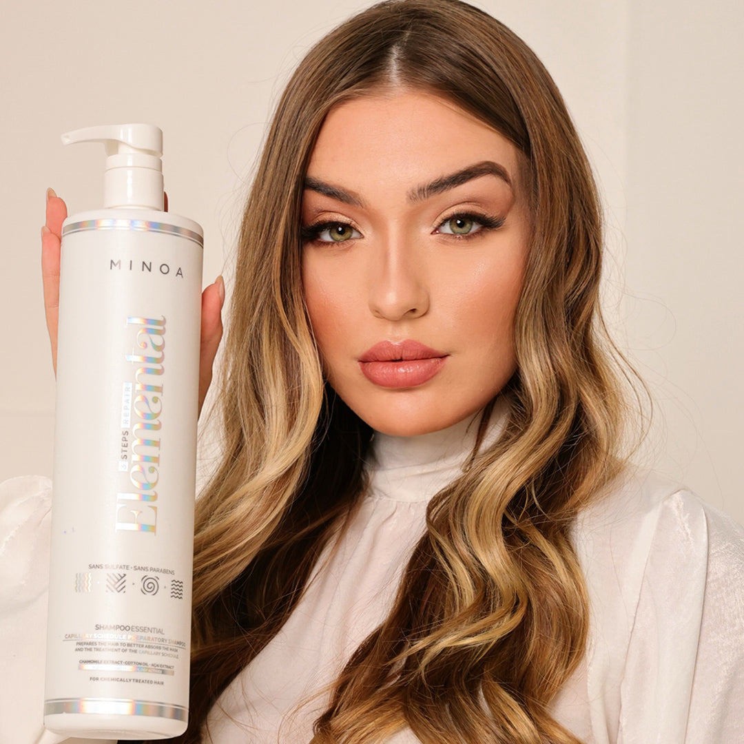 O shampoo essential, da Minoa Professional, é o passo inicial de um cronograma capilar apaz de recuperar a saúde dos seus cabelos, tornando-o macio e garantindo a recuperação da vivacidade e brilho dos fios. Limpa suavemente o couro cabeludo e os cabelos, removendo as impurezas e o óleo sem a sensação de ressecamento, preparando os cabelos para melhor absorver a máscara e o tratamento do cronograma. É enriquecido com ingredientes hidratantes, nutritivos e restauradores, que iniciam o processo de restruturação desde a lavagem.